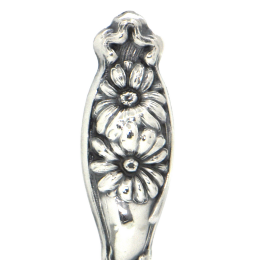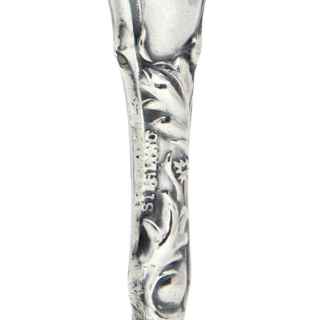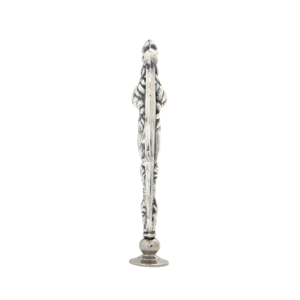 Antique hollow sterling silver wax seal splendidly decorated in the repoussé technique featuring a scroll and floral motif. The round matrix (stamp) is empty perfect for your initials or family crest.
