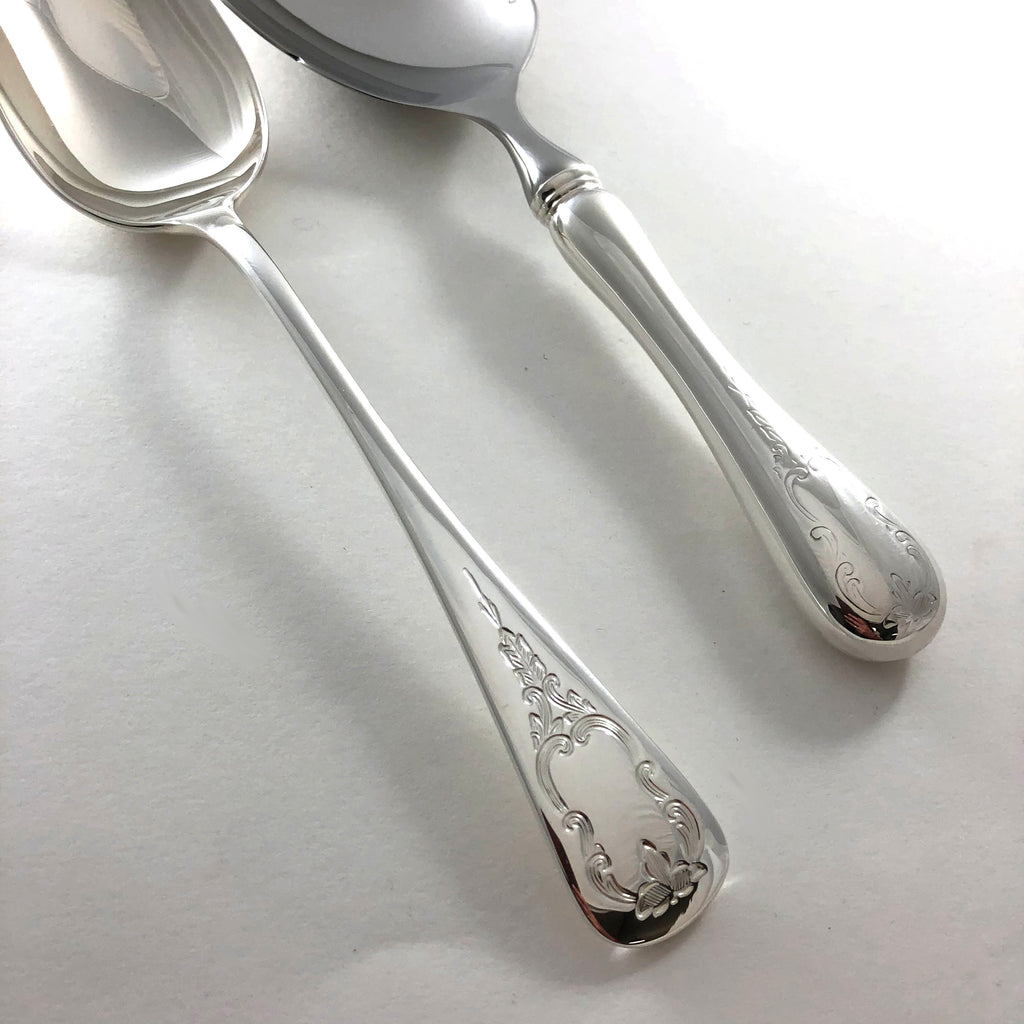 Birks Sterling Silver Brentwood Pattern - The Henry Birks and sons Brentwood pattern is a standard curved outline with a beautiful engraving into the individual pieces.