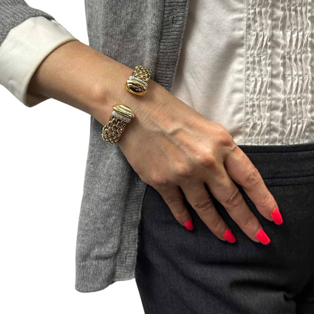 Italian Jewelry house Fope; this open cuff is beautifully made in 18k yellow and white gold with pavé set diamonds.