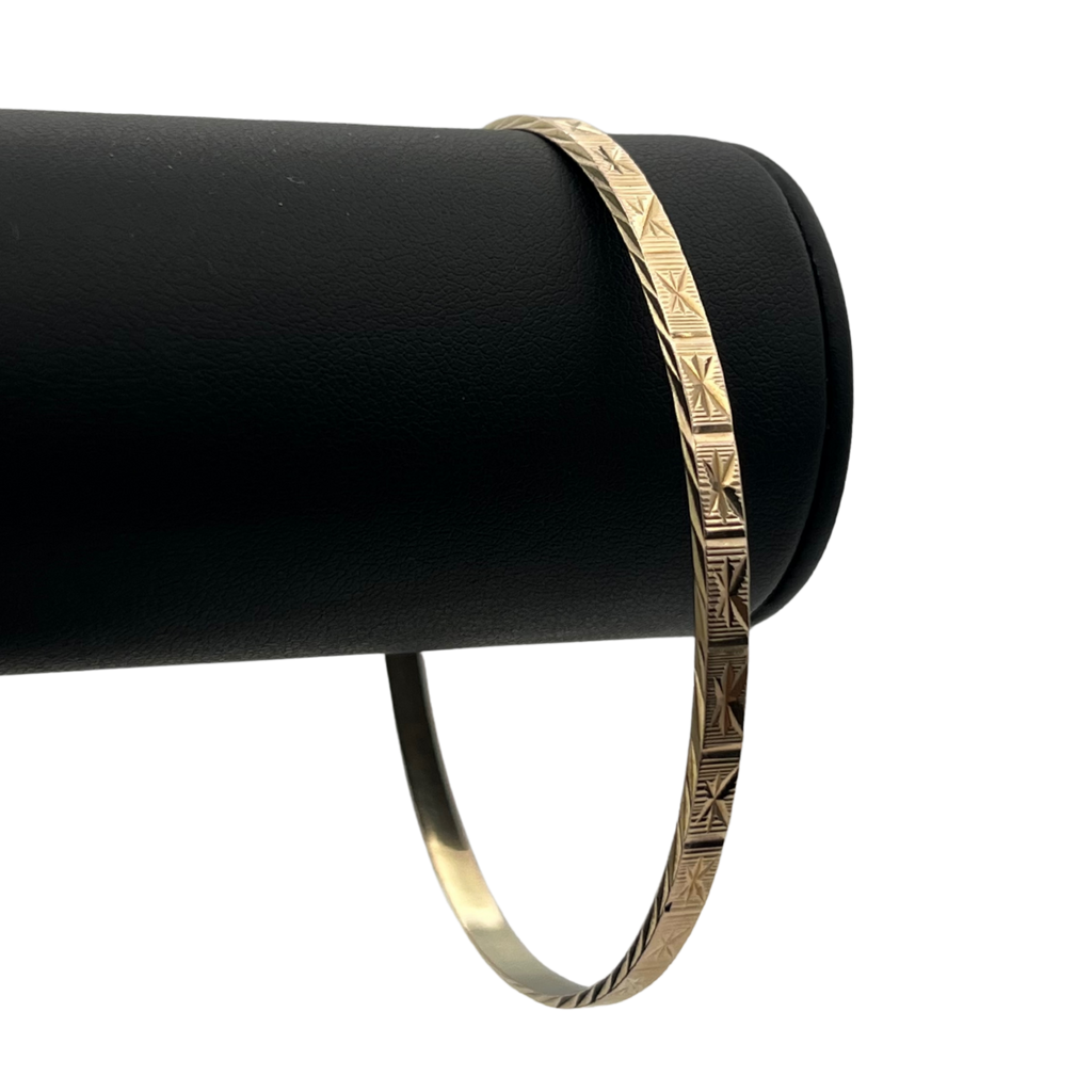 Vintage 14k Yellow Gold Engraved 3.98mm Bangle Bracelet