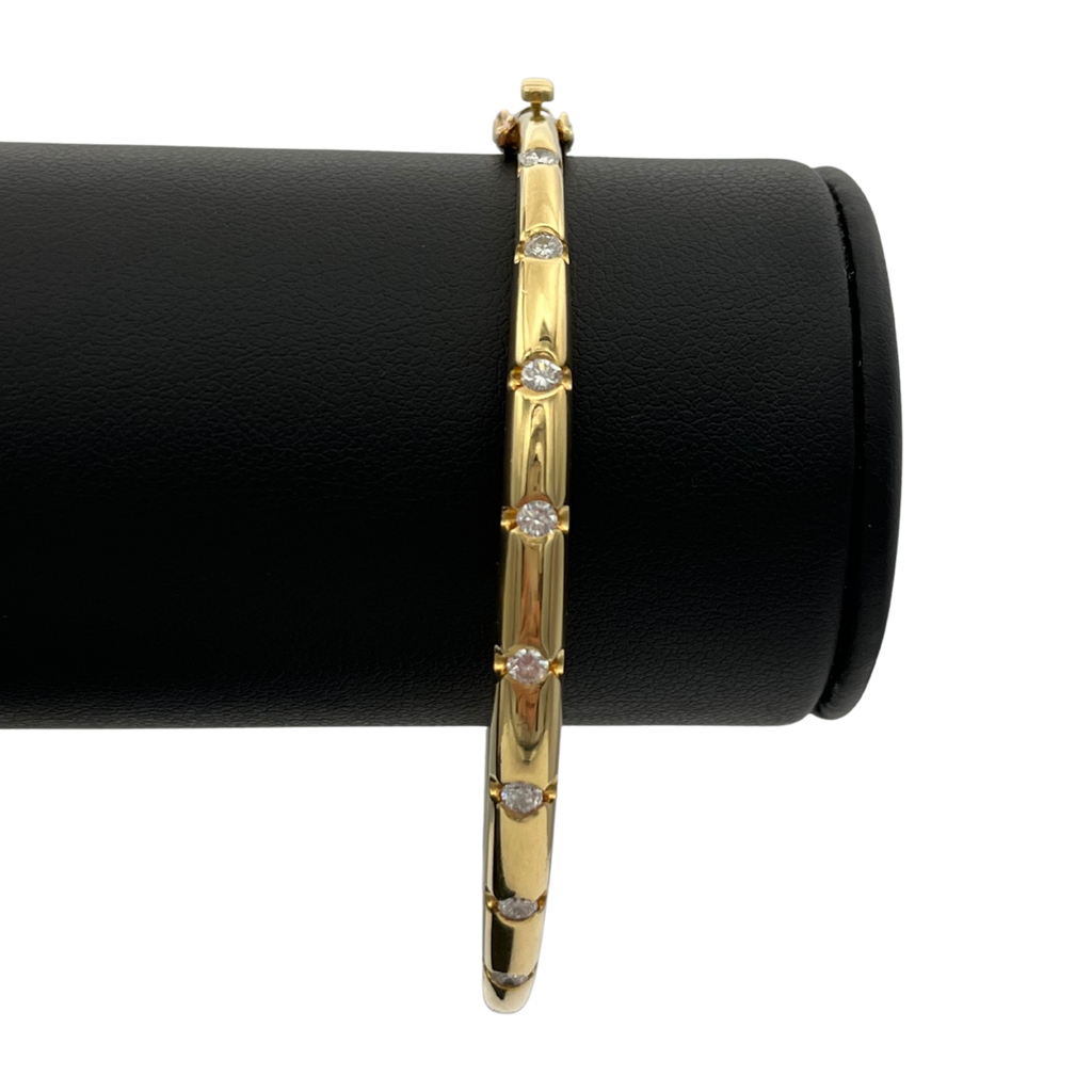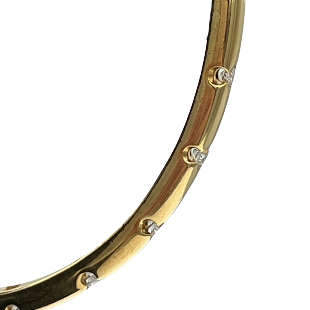 A unique vintage high polish18k yellow gold and open semi-bezel set diamond oval hinge bracelet with push clasp and two figure eight safety links.