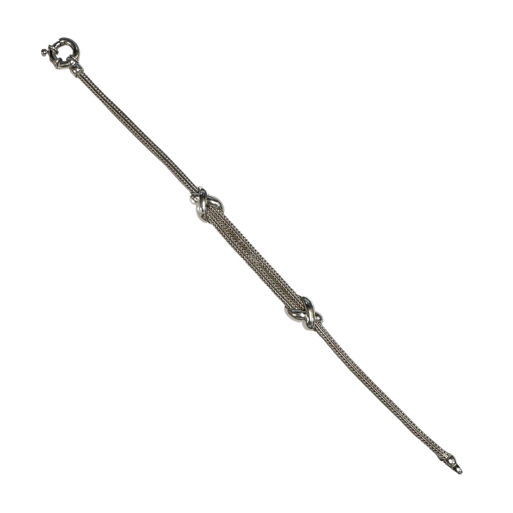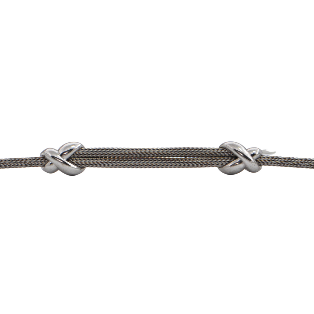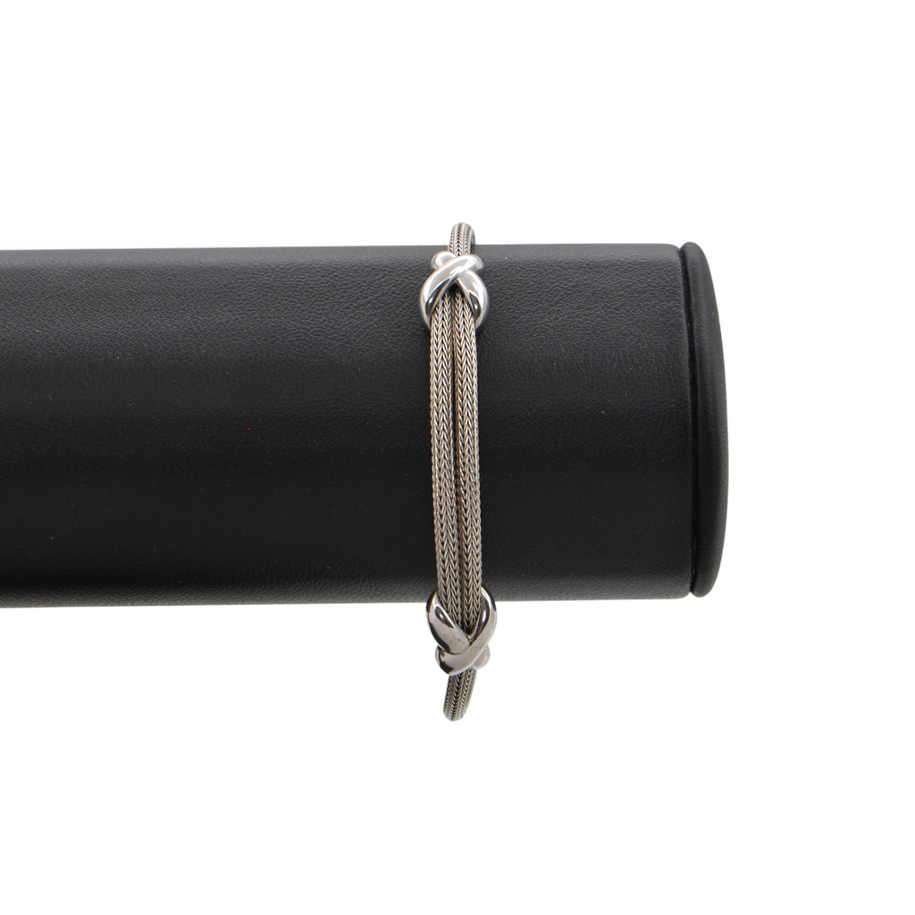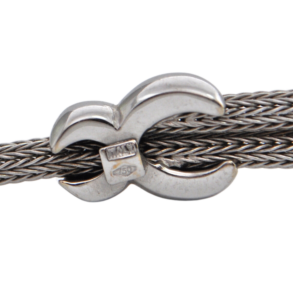 Charming Italian 18k white gold solid flexible cable chain bracelet featuring a double strand in the front with two high polished white gold stations.