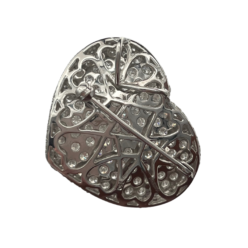 Vintage Birks pavé diamond and 18k white gold heart pendant / brooch.