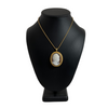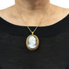 Material: One (1) bezel set, hand-carved shell cameo measuring approximately 1 3/8 x 1 1/16 inches.