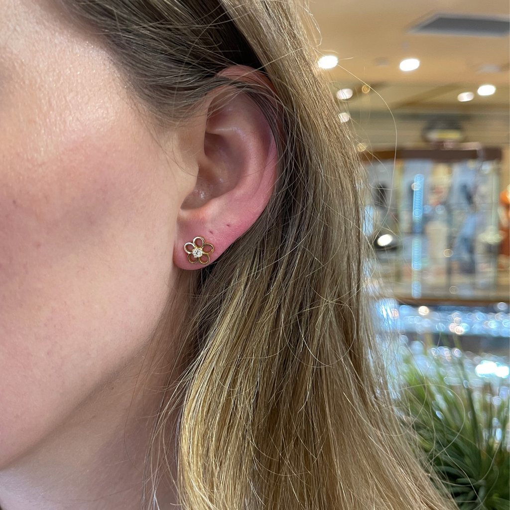 Custom-made as part of our namesake collection, these Daisy Exclusive flower earrings feature a single center diamond and are available in 18k yellow, white, and rose gold.