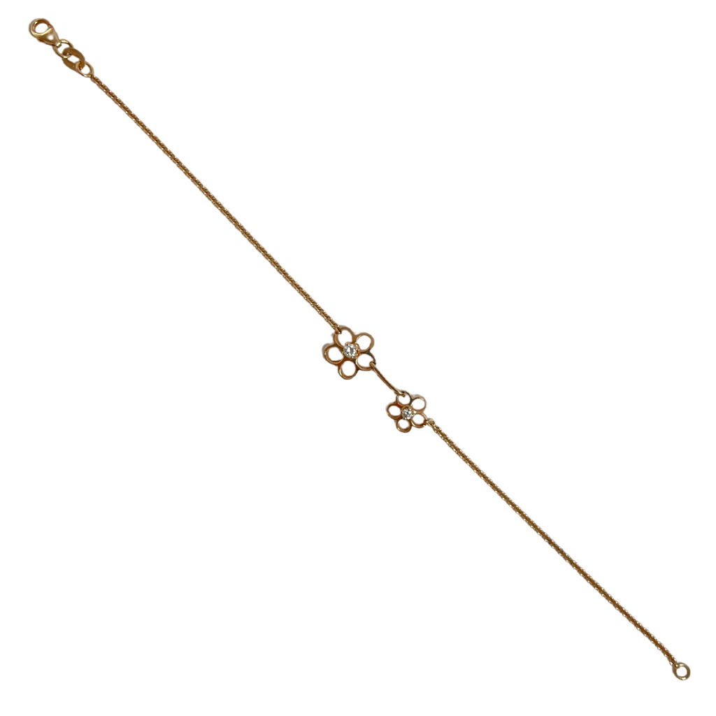 Our namesake collection would not be complete without this lovely 18k rose gold tiffany link bracelet with two daisy stations embellished with glimmering diamonds.