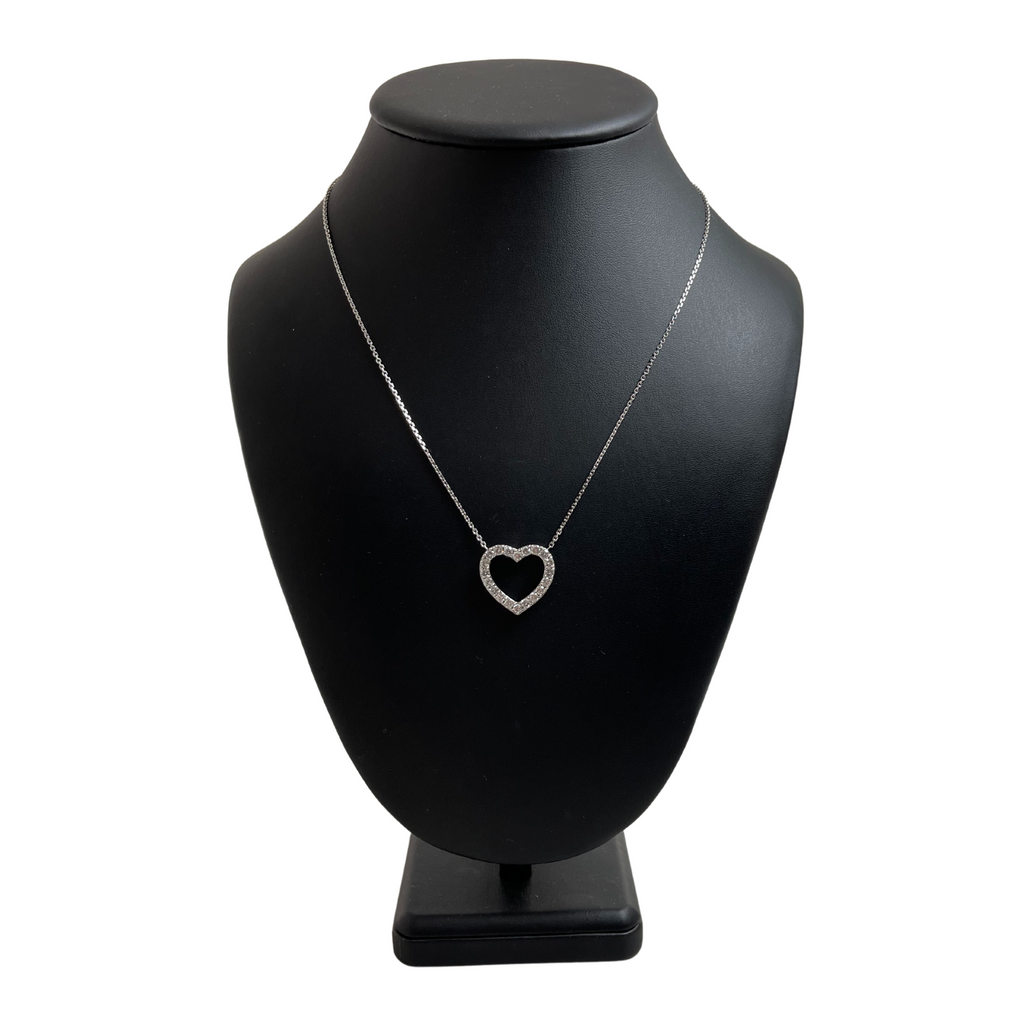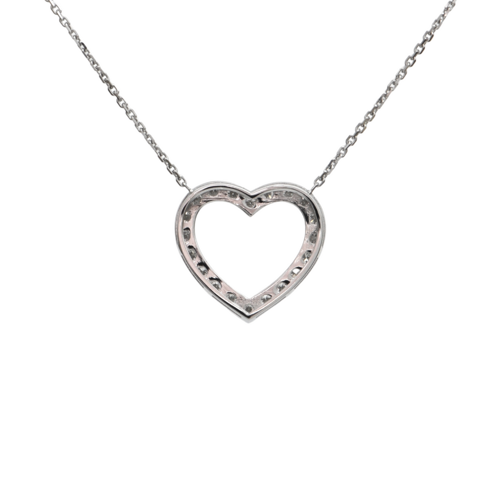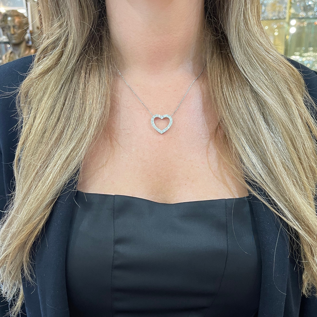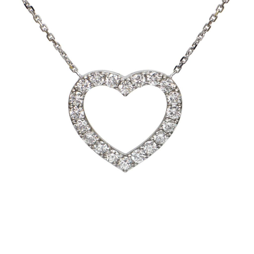 The perfect everyday necklace, this elegant heart is adorned with 1.65ct sparkling colorless diamonds and hangs on a 18k white gold diamond cut chain. This necklace is available in either yellow, white, or rose gold.