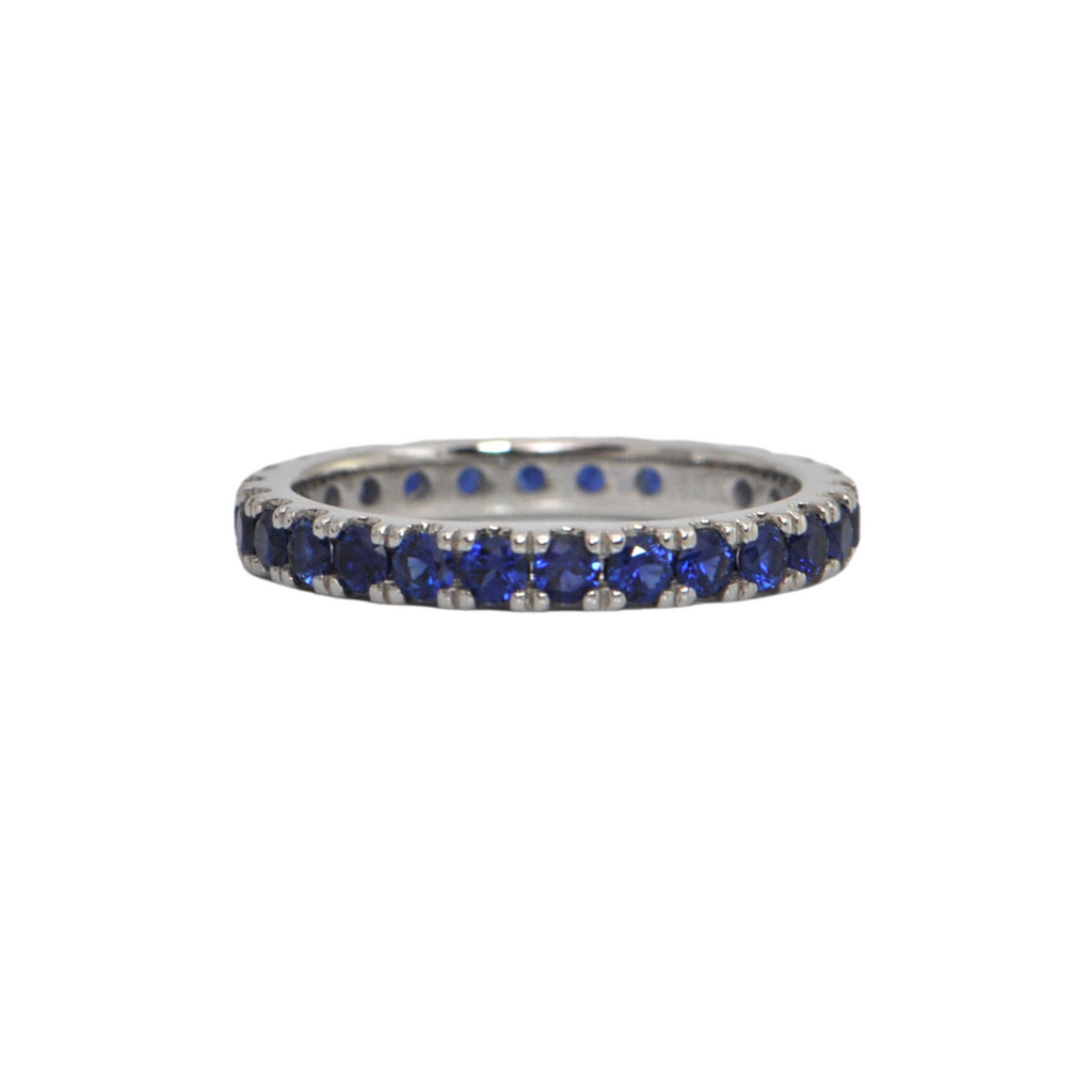 A beautifully made Daisy Exclusive Sri Lankan sapphire 18k white gold eternity band.