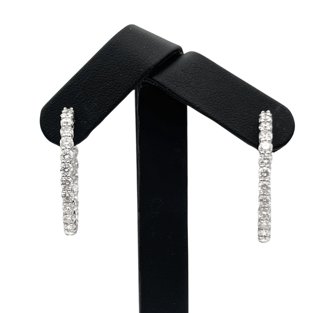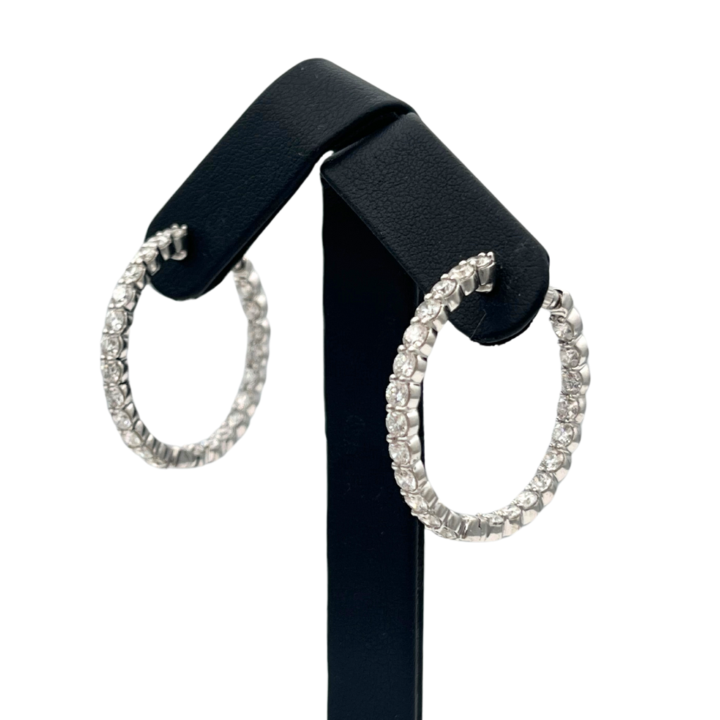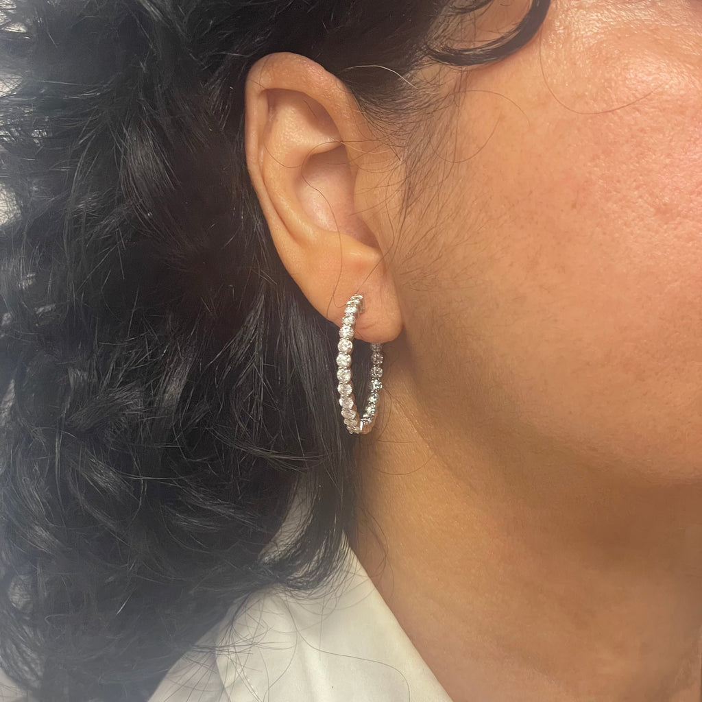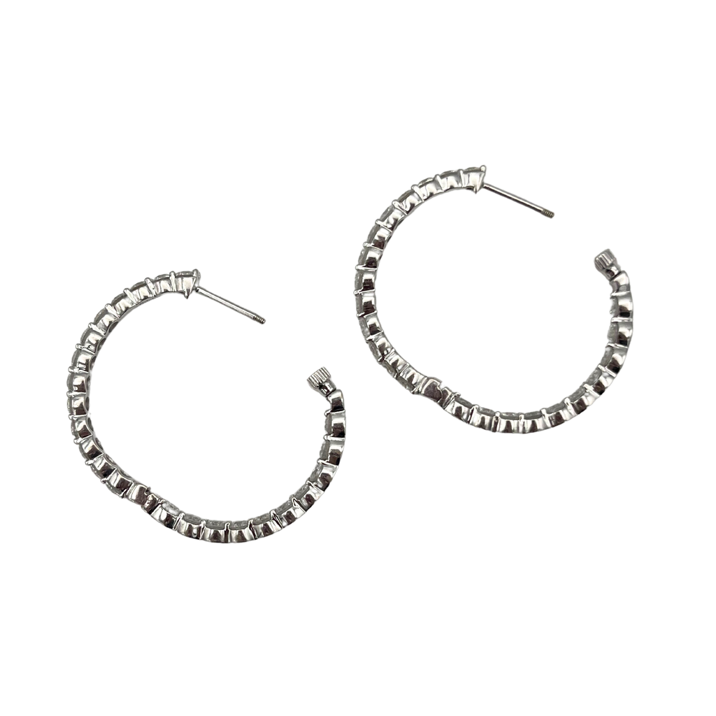 The perfect size inside-outside diamond hoop earrings. The earrings are 1-1/4'' in diameter making them not large yet still have large enough diamonds to get noticed. The closing mechanism is an easy to use screw on post which gives the extra level of safety when wearing these earrings.