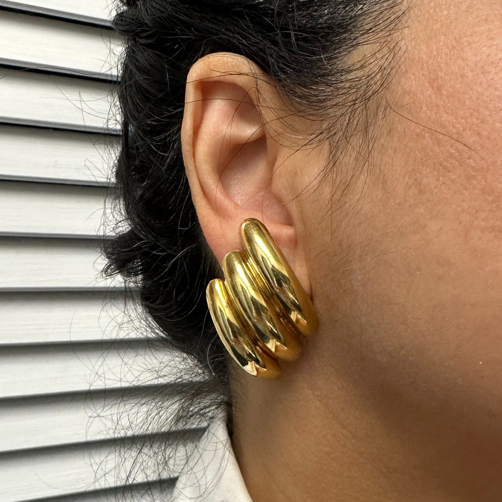 Fantastic pair of oversized Italian 18k yellow gold diamond shaped fluted clip-on earrings. A post can be added for minimal cost.