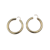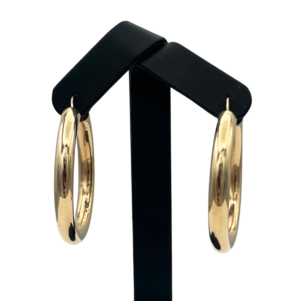 Vintage thick hollow 10k yellow gold hoops with a nice rounded wire post to drop nicely around the ear.