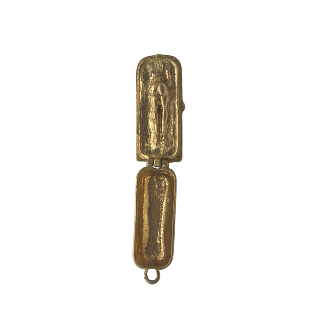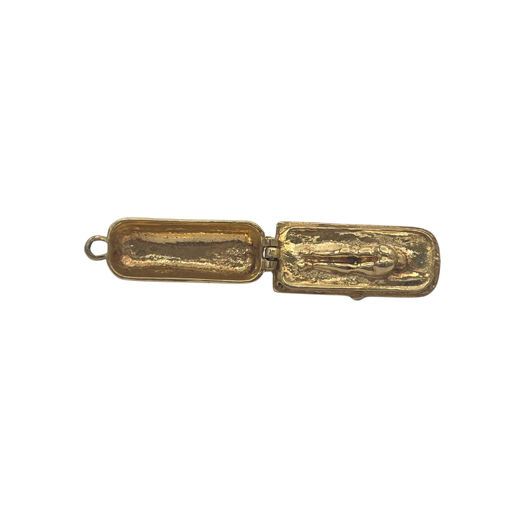 This adorable 9k yellow gold hinged bathing woman charm opens to reveal a 'cheeky' surprise!