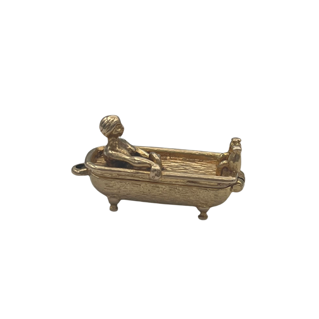 Vintage 9k Yellow Gold Hinged Bathtub Charm