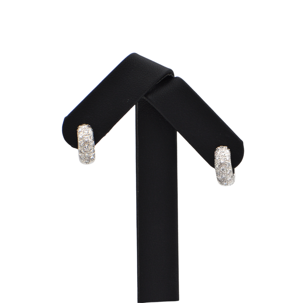 Lovely pair of 18k white gold round hinged huggie earrings sparkling with pavé set diamonds.