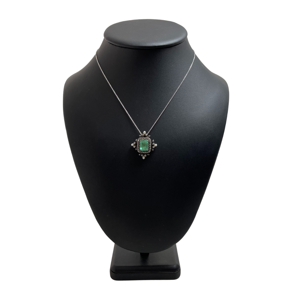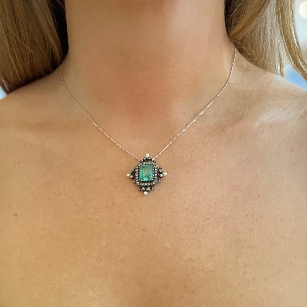 Dating from early 19th Century comes this extraordinary, rare hand-made Georgian emerald, diamond, and pearl pendant. Originally a brooch we have converted this Georgian darling into a pendant for more practical wear.