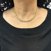 Stunning Italian high polish solid 14k yellow gold fancy link choker necklace. Links are flexible and necklace sits beautifully along the collarbone. Attaches with a push clasp and has figure eight safety lock for added security.