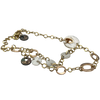 Mother of Pearl: Six (6) round mother of pearl discs in white and darker iridescent tones featured intermittently throughout the design of the necklace