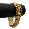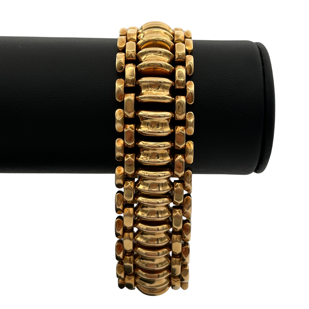 Vintage heavy hollow 18k rose gold link bracelet with a matching link hinged lock and 2 1/4 inch safety chain.