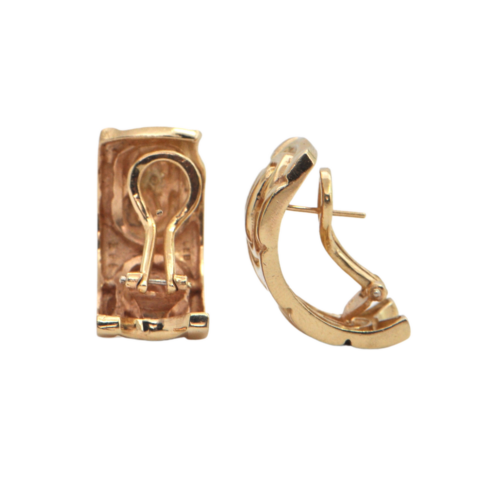 Lovely textured pair of half hoop earrings that attach with post and omega systems.