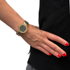 Dial Numerals: Gold '12' and '6' roman numerals and stick hour indices.