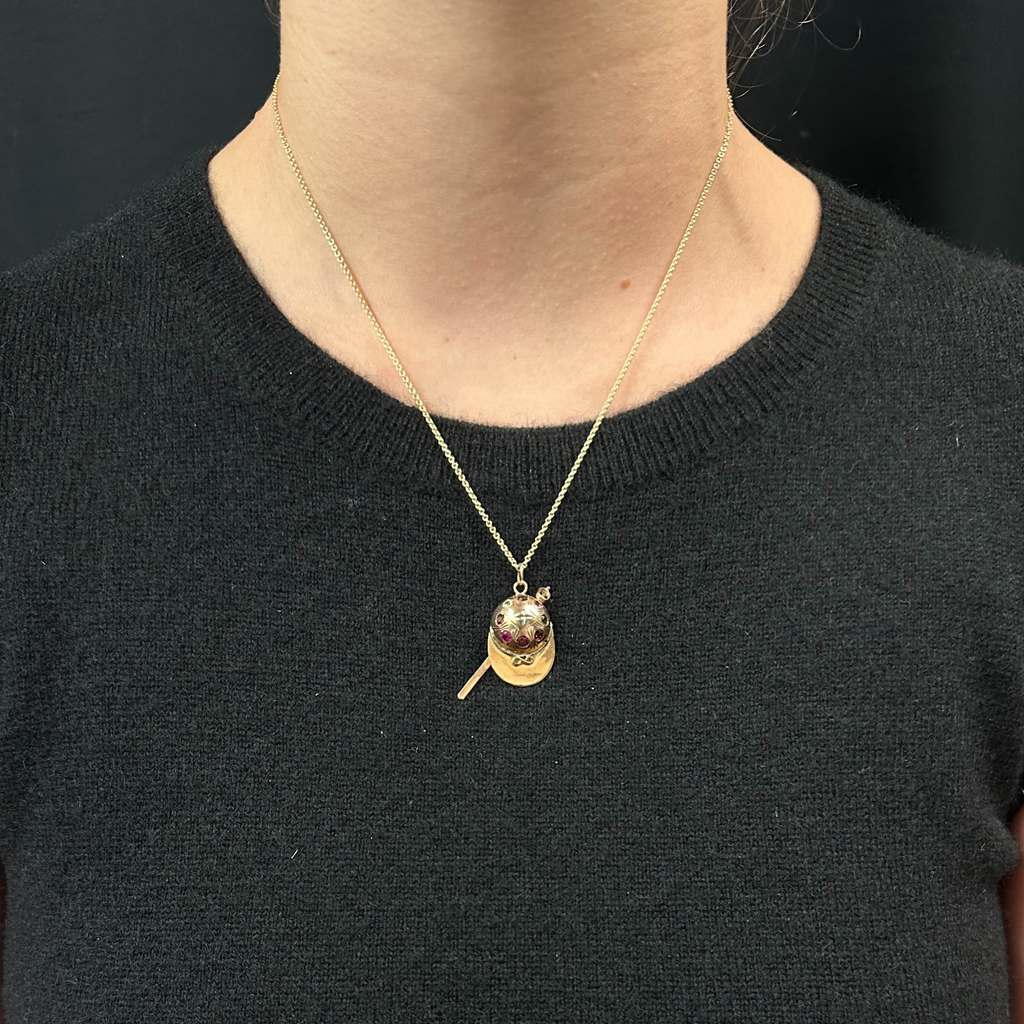A lovely little 18k gold charm with faceted colored glass stones all around.