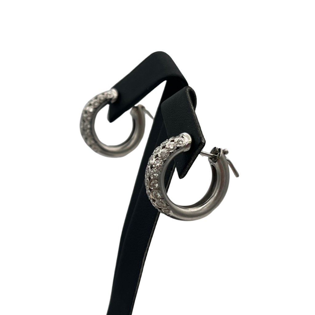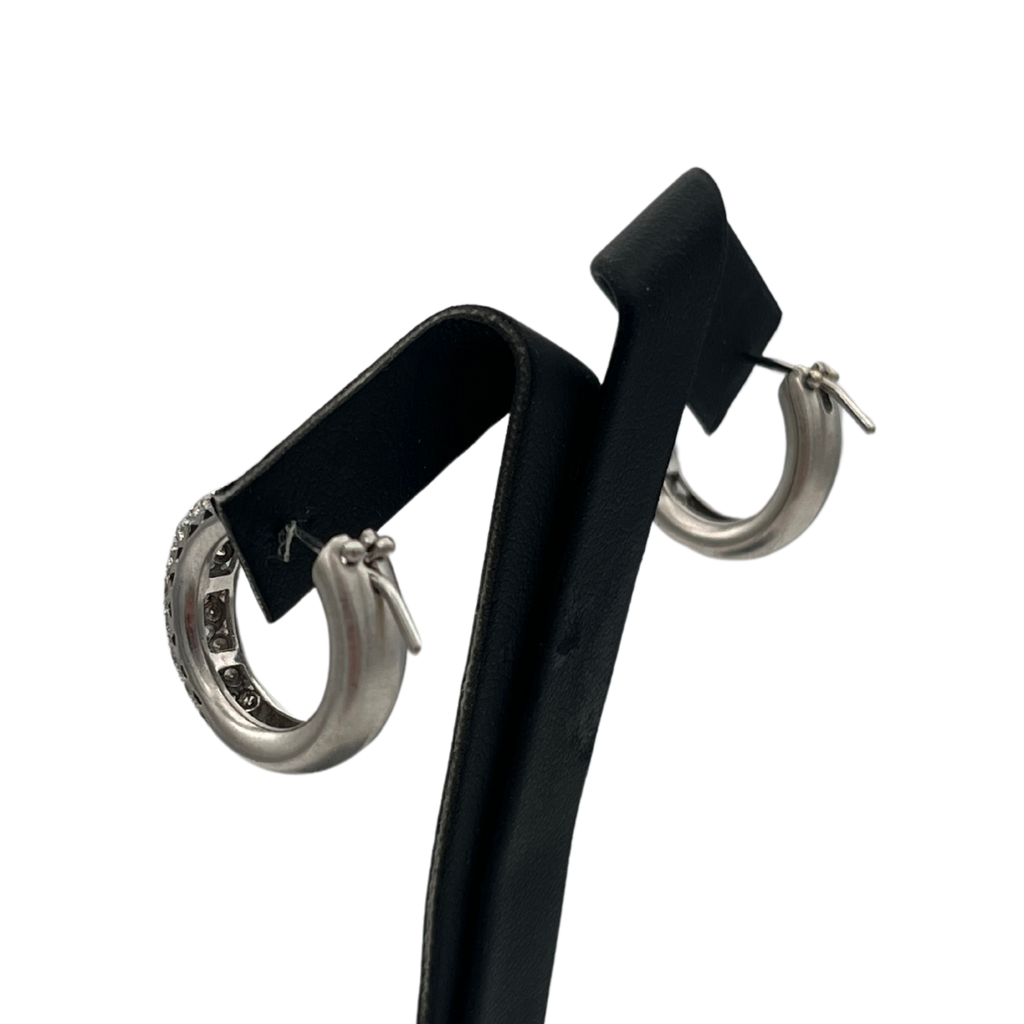 A lovely pair of vintage three row diamond huggies with a satin white gold finish.