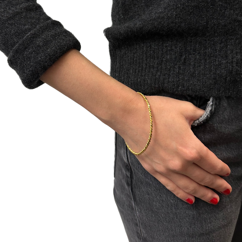 Lovely vintage solid bright 18k yellow gold bracelet featuring a twisted high polish and cable like design.