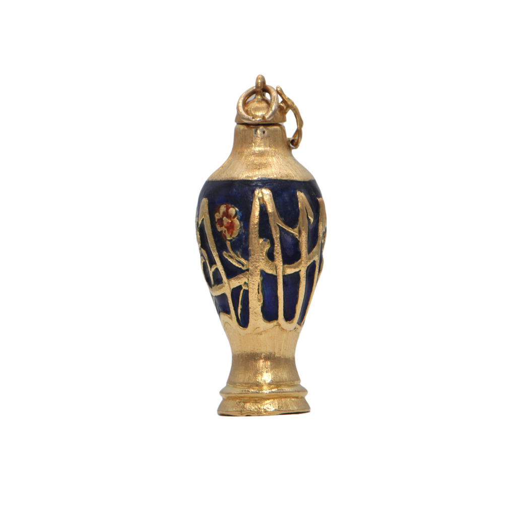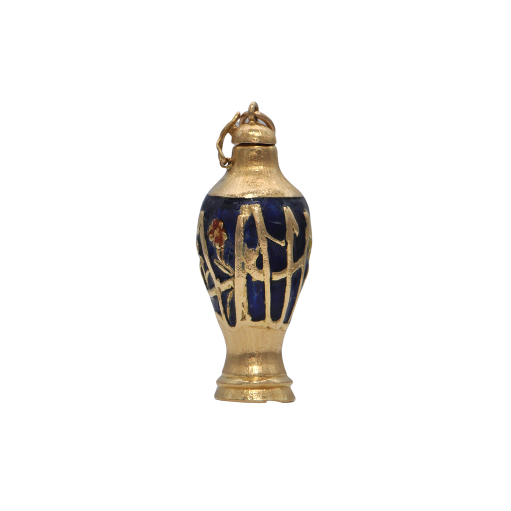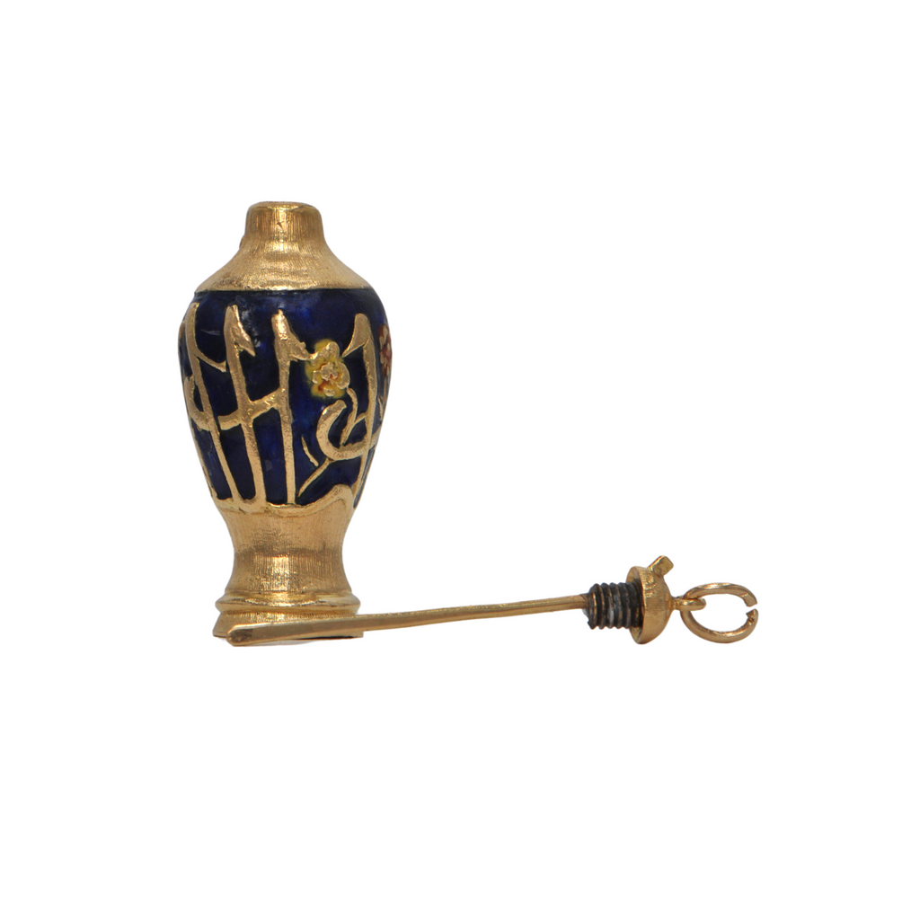 Beautiful vintage 18K yellow gold and enamel perfume bottle charm. In excellent condition.