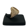 Vintage 1945 dos Pesos Mexican coin in 18k yellow gold ring with U-guard.