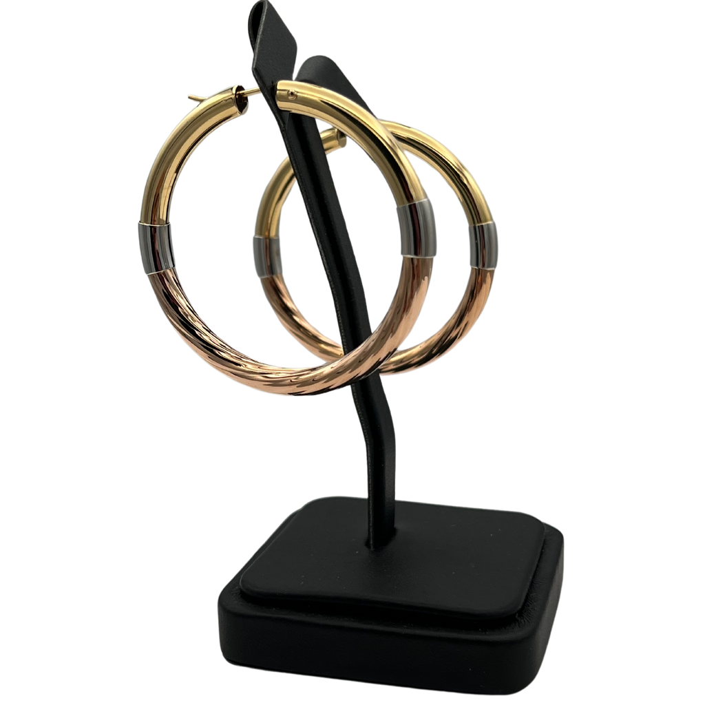 Vintage 3 tone 18k Italian Large 2" Hoop earrings