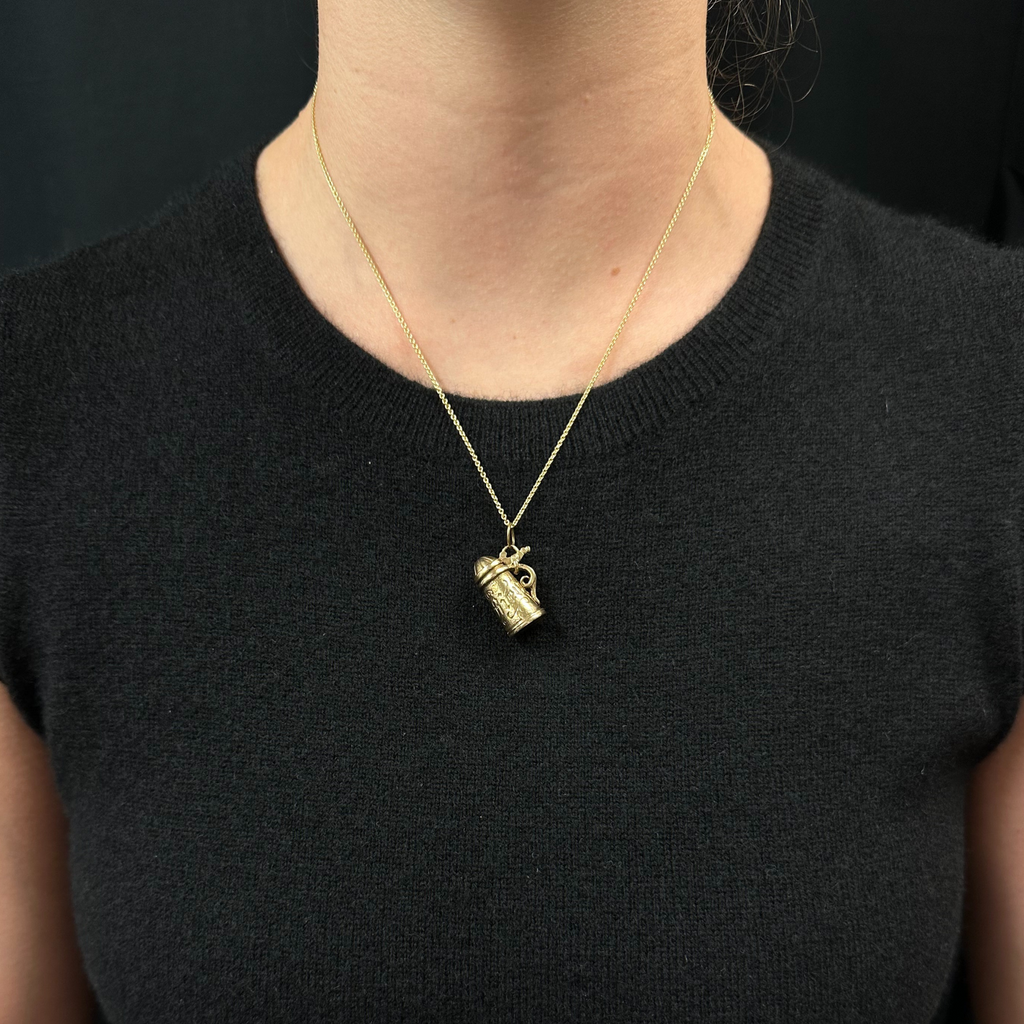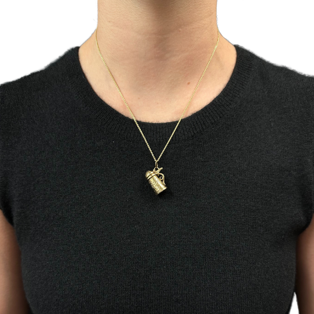 Vintage English 9K yellow gold beer stein charm with lid that opens.