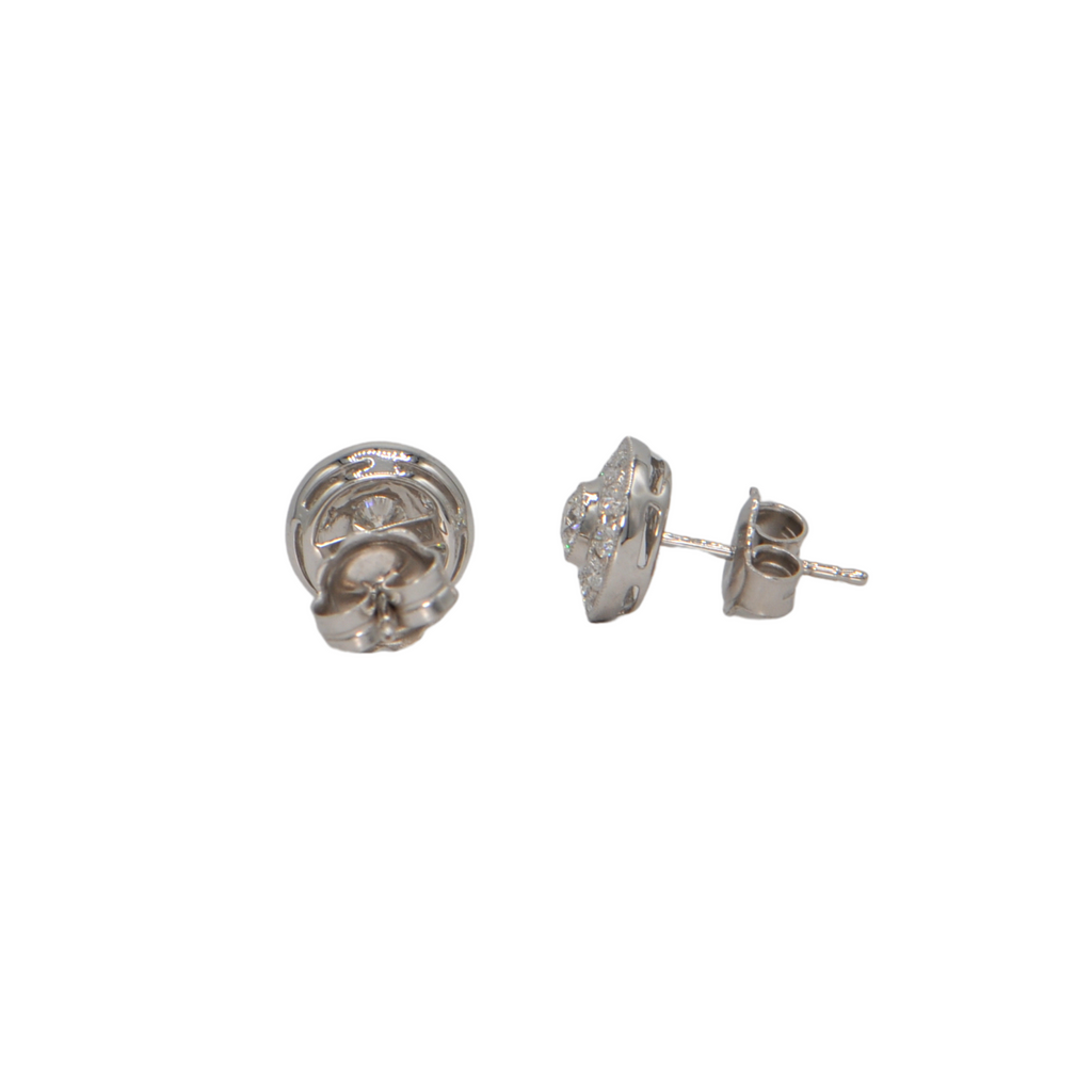 Sparkly pair of near-colorless diamond cluster 18k white gold earrings.