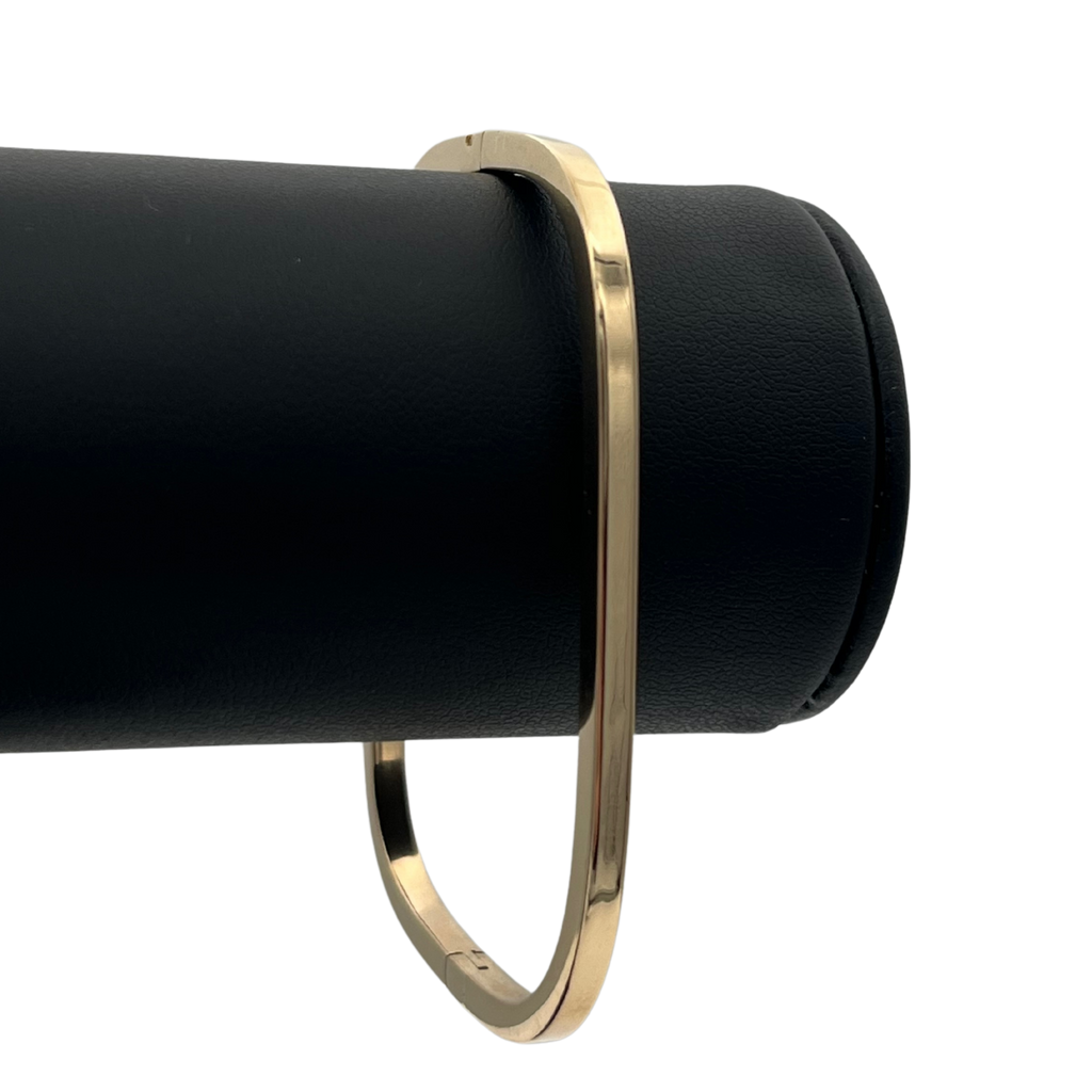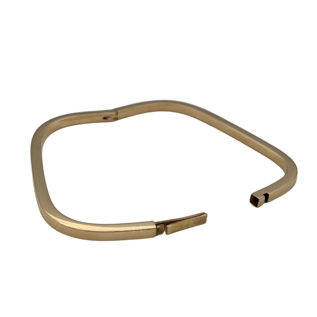 Vintage 14k yellow gold high polish squared geometric hinged bangle bracelet with push clasp.