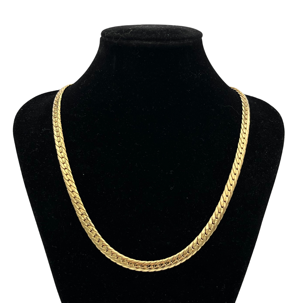 Vintage 18k yellow gold 5.6mm hollow herringbone chain with a lobster clasp.