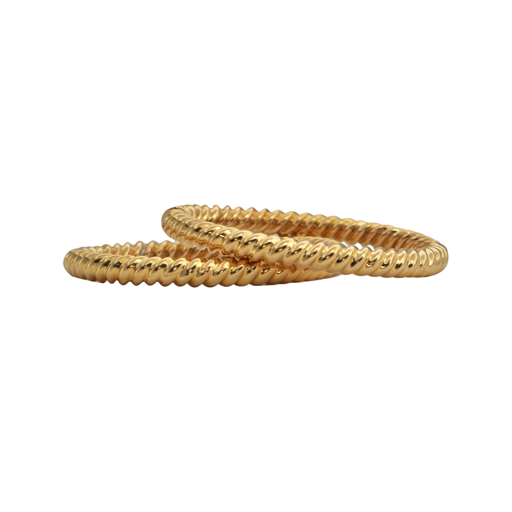 Sleek and stylish 18k yellow gold twisted oval hinged bangle bracelet. There are two available.