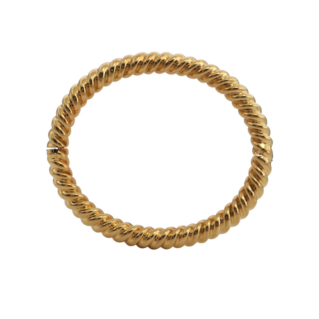 Vintage Italian 18k Gold Oval Hinged Twisted Cable Bangle Bracelet