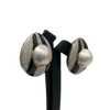 Bold and beautiful hand made vintage earrings featuring fabulous iridescent Mabe pearls bezel set in a rounded teardrop frame of pavé diamond and black onyx cabochon cut alternating stripes. The earrings fasten with a post and oversized hand made omega clip.