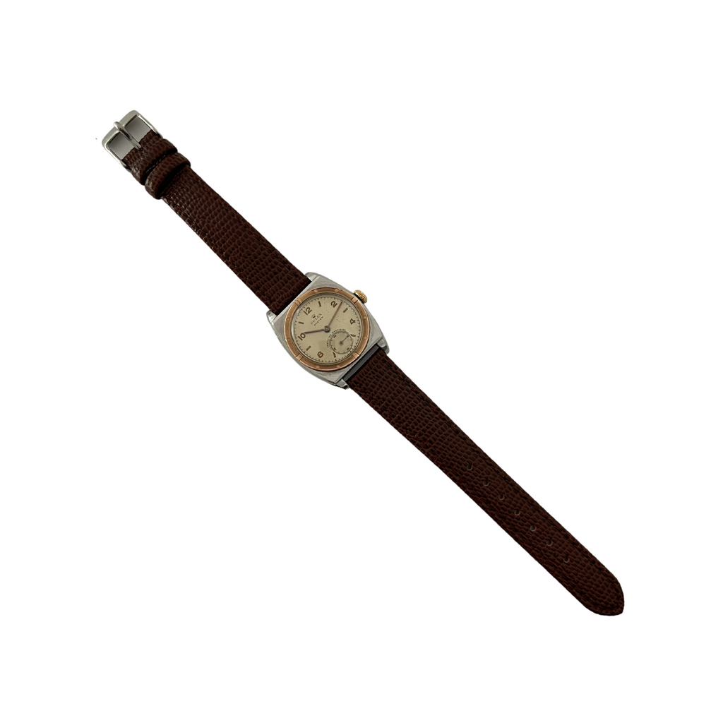 Vintage Rolex Oyster Victory manual wrist watch circa 1942. In the late 1930's Rolex ran an ad campaign titled "Times Flies" featuring renowned pioneering aviators wearing Rolex watches, which was extremely successful and created a huge demand amongst pilots of the era. This particular model - the Rolex Victory - was sold in Canada and was marketed to Canadian soldiers going overseas, many were given to soldiers going off to war as gifts. These watches represent a unique part of the early history of Rolex and are fantastic wearable examples of Canadian horological timepieces.
