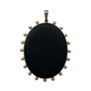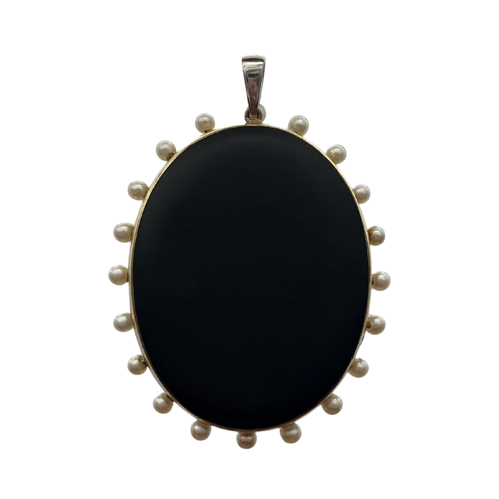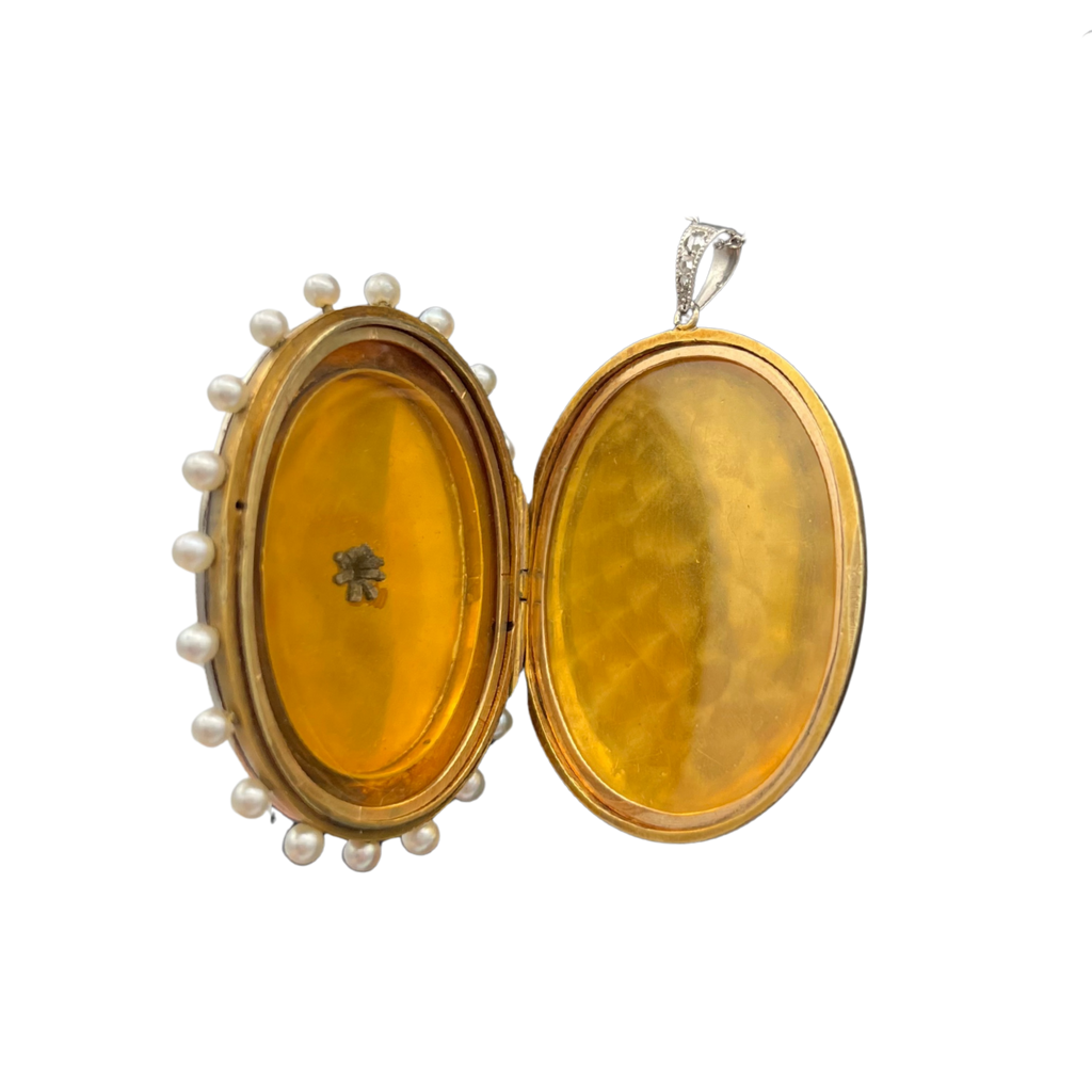 Antique Victorian 18k Gold Onyx and Seed Pearl and Diamond Mourning Locket