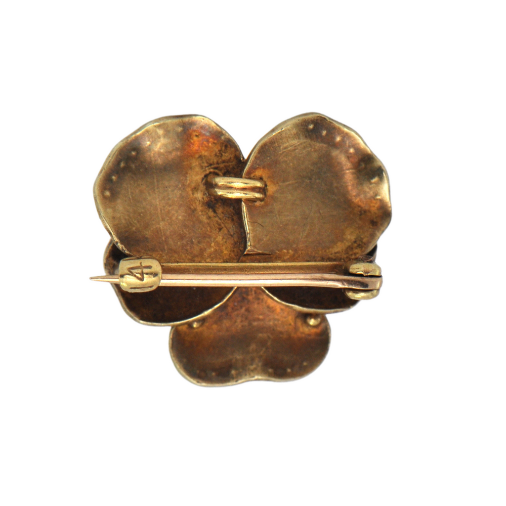 Antique Enamel and Pearl 14k Gold Pansy Brooch