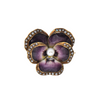 Exceptional Antique 14k yellow gold pansy brooch expertly hand-enamelled in vibrant shades of purple with a single lustrous pearl set in the centre of this charming bloom. The edges of the petals are delicately bordered in seed pearls.