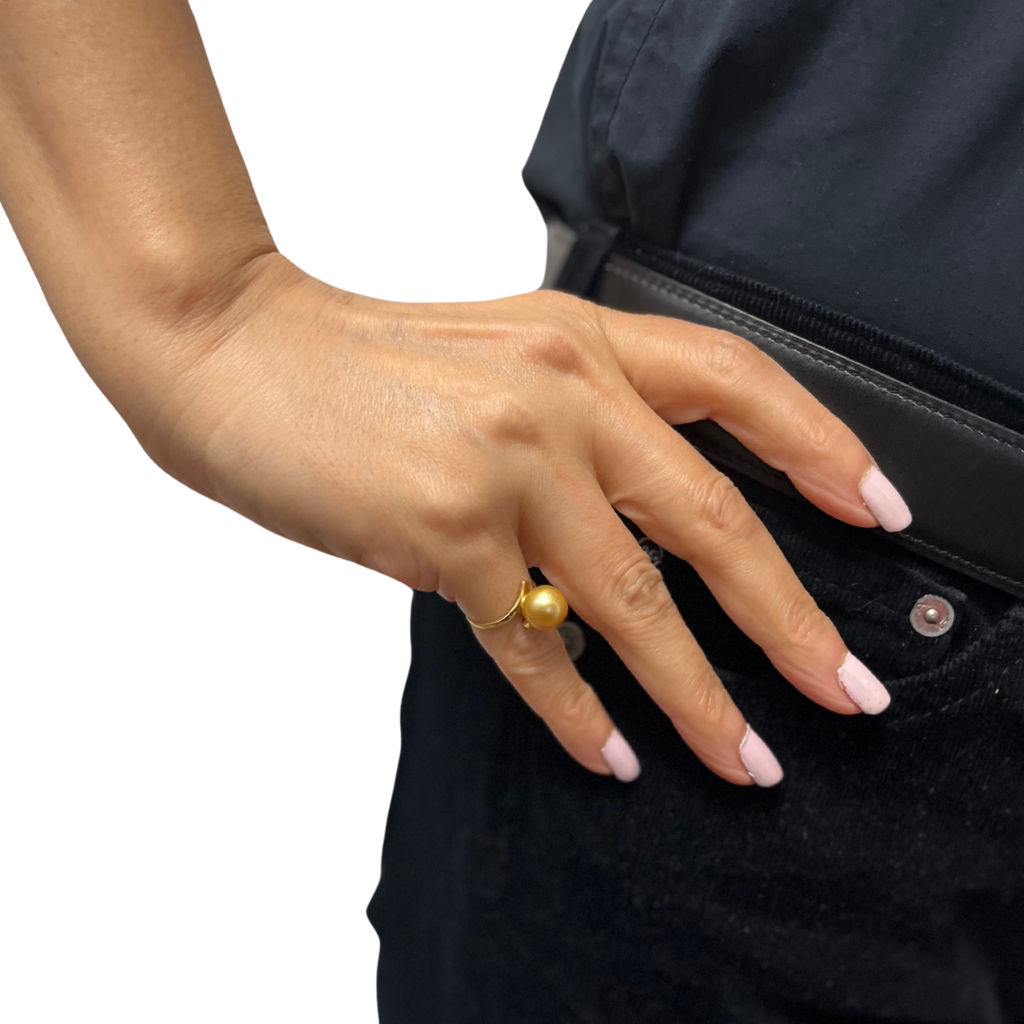 Pretty vintage ring with a golden south sea cultured pearl and 14k yellow gold band.