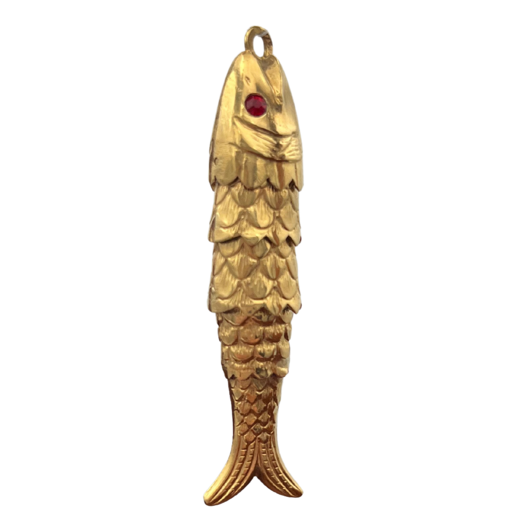 Vintage 18k Yellow Gold Articulated Fish Pendant
