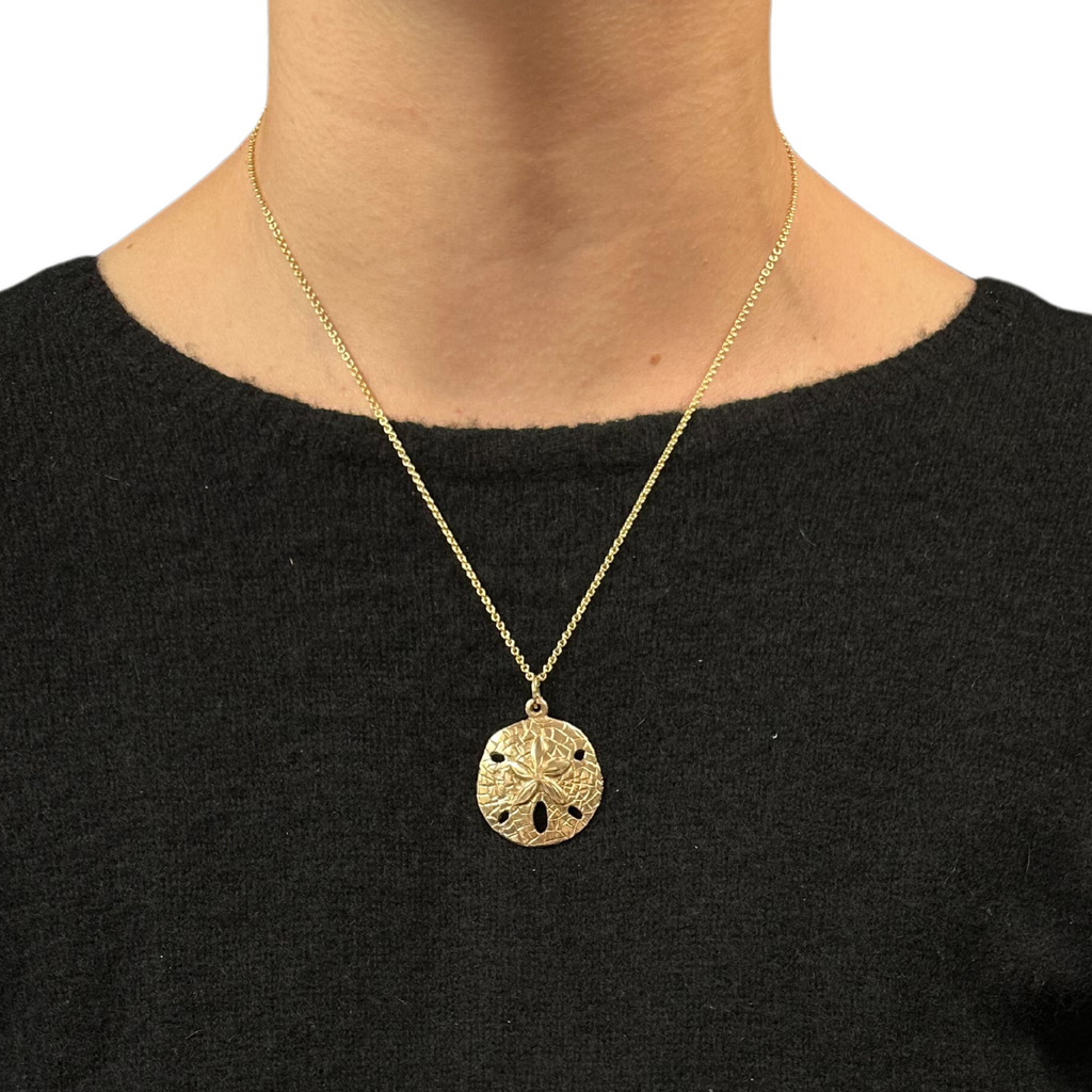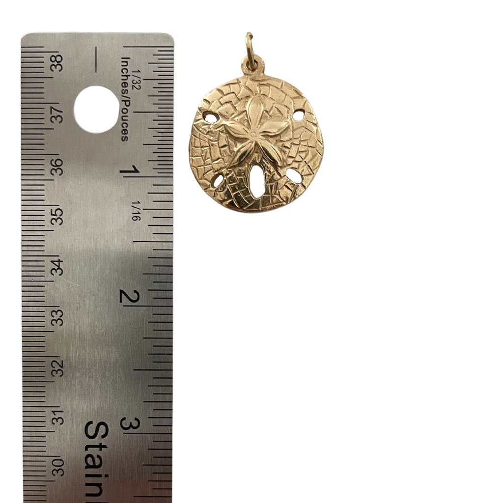 Delightful solid 14k rose gold sand dollar charm. Looks lovely delightful as a pendant or worn on a charm bracelet.