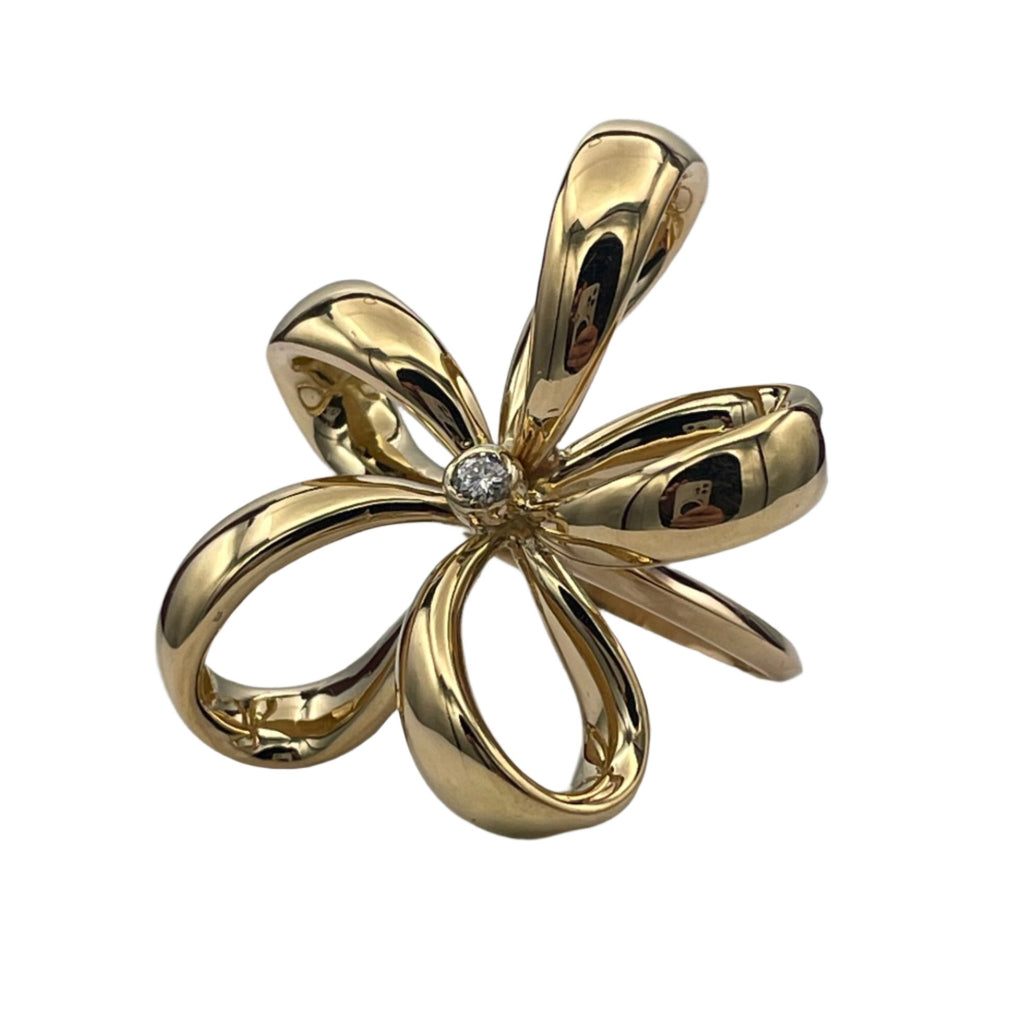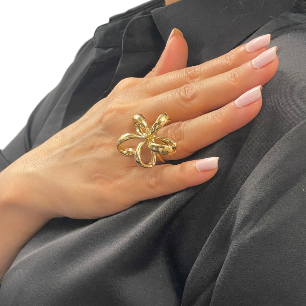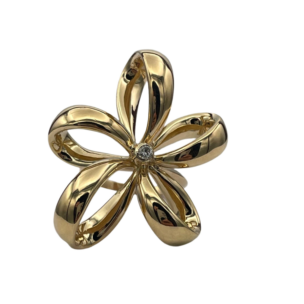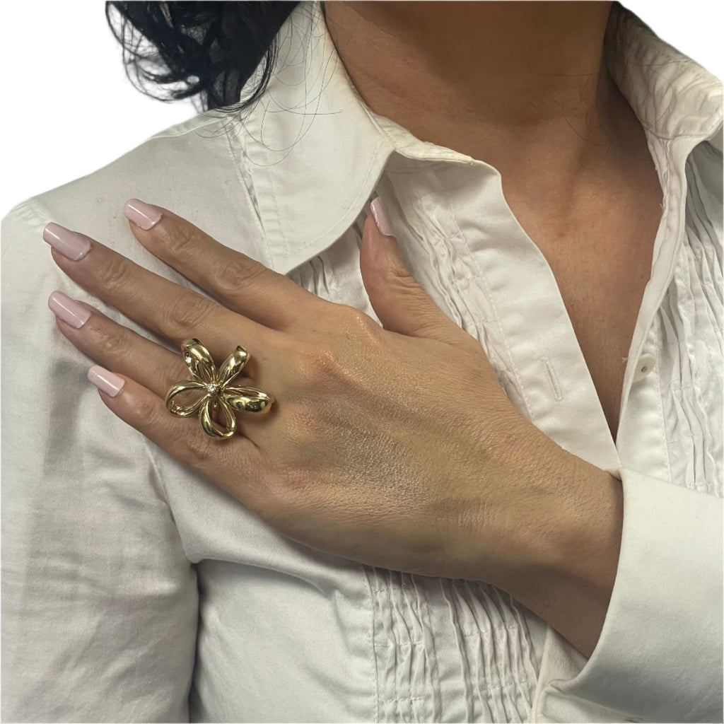 Exceptional High Polished 18K Solid Yellow Gold and Diamond flower ring. Beautiful and original design!