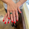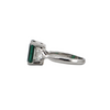 Fine quality green emerald and diamond 18k white gold ring.