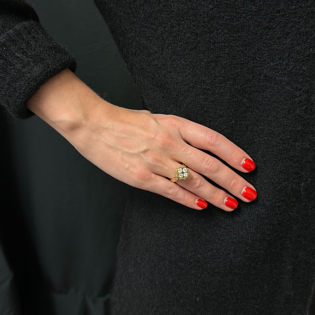 Mid-Century brutalist style diamond 18k yellow gold ring.