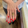 Like modern art for your hand this 18k yellow gold and sterling silver ring elegantly coils around the finger and is adorned with a stunning polished chrysoberyl cabochon.