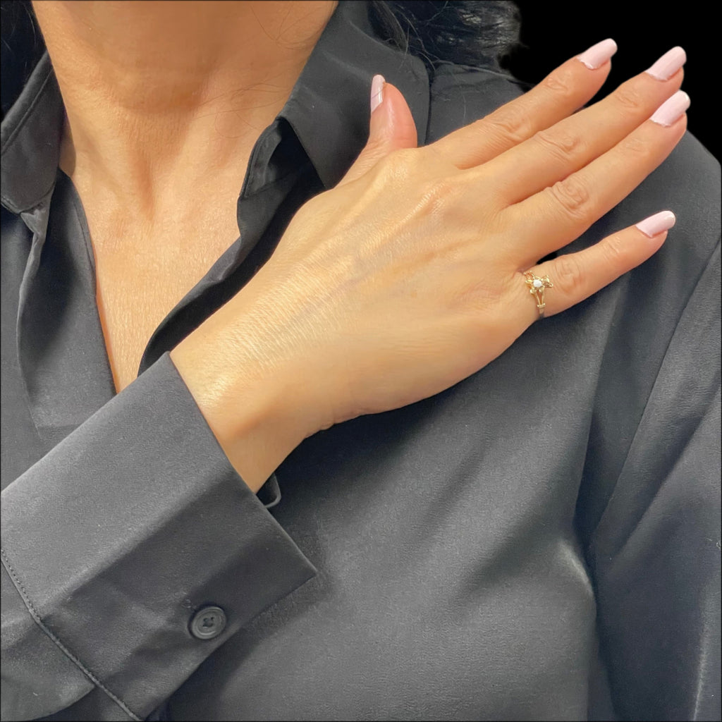 Lovely Teddy Bear 10k yellow gold ring with an opal set in its belly.