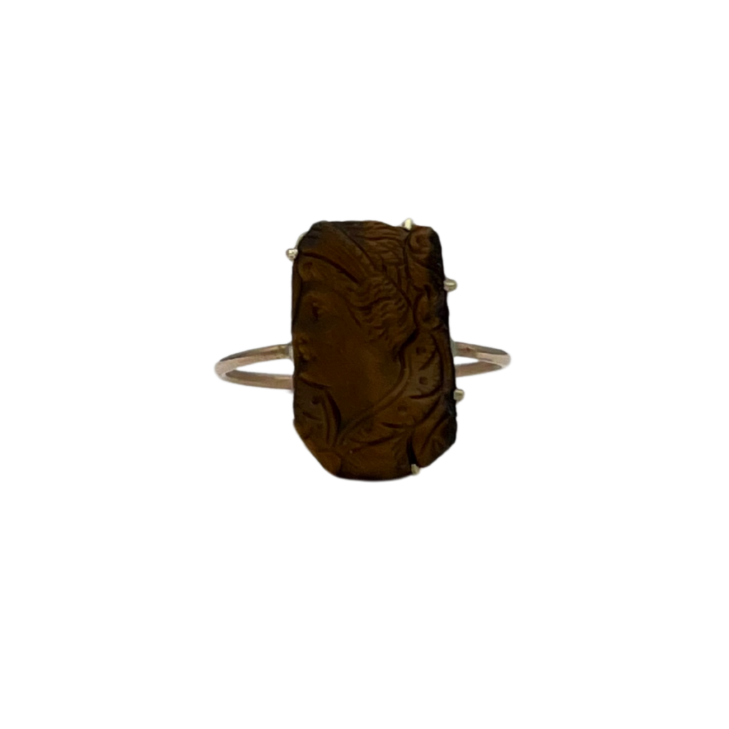 Victorian Tiger's eye Cameo Stickpin Ring